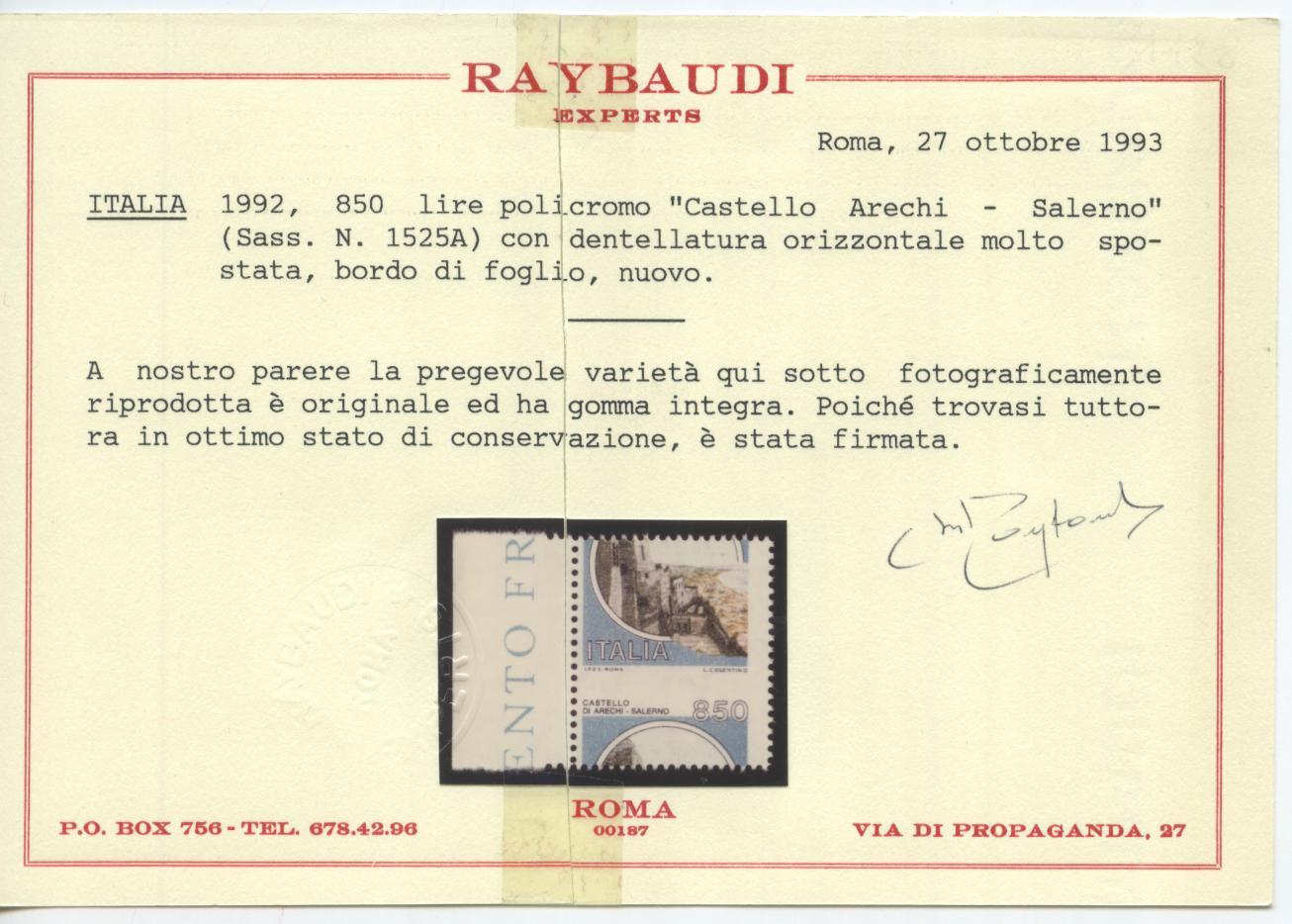 Scansione lotto: REPUBBLICA 1992 L.850 VARIETA' **  CERT.